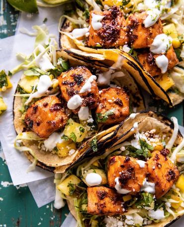 Wild Caught Pacific Cod / Purple Cabbage / Cilantro Lime Sauce / Spanish Rice / Flour or corn torilla